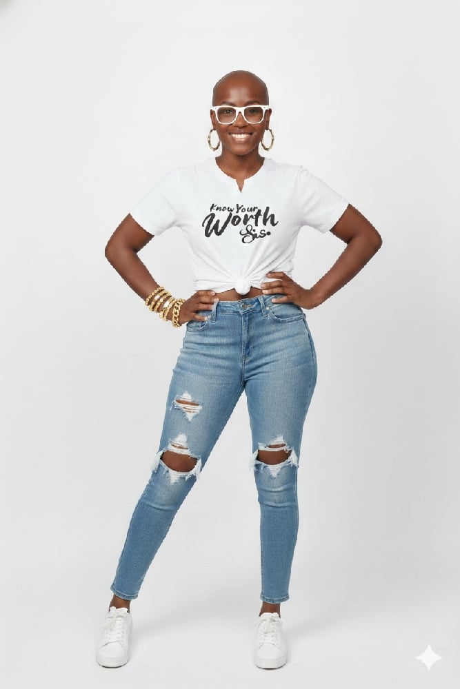 Know Your Worth Sis" is designed to uplift and affirm all women. T-shirt 100% cotton, exclusive apparel.